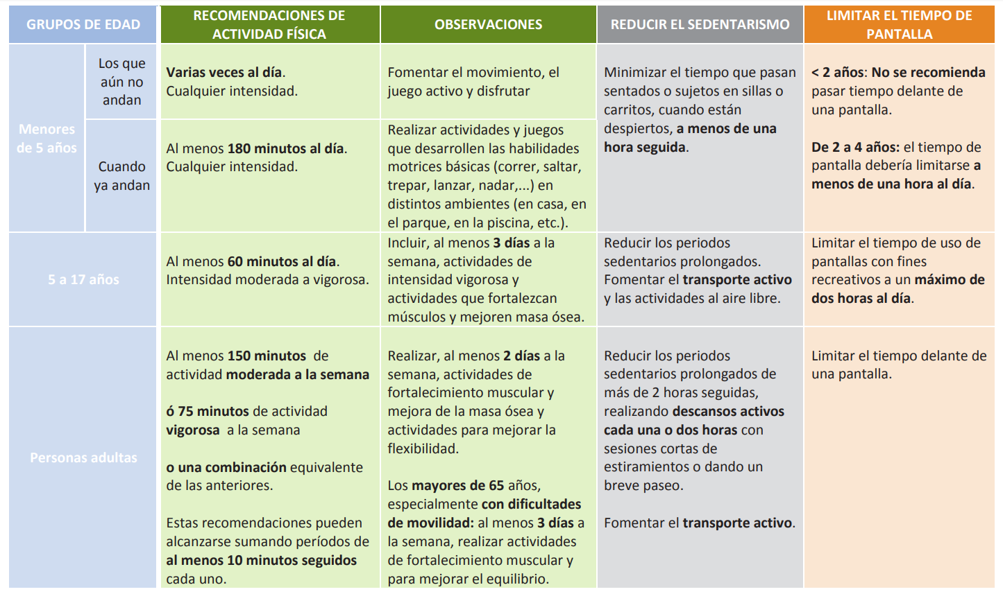 La actividad física es importante en todas las edades, y debe integrarse en múltiples configuraciones.